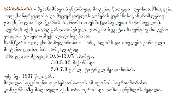 The wine is manufactured since 1907. For its excellent taste Khvanchkara