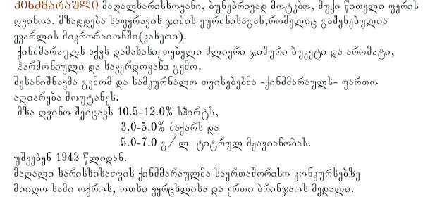 the Kvareli district of Kakheti. Kindzmarauli has a strong characteristic