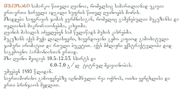 grape varieties cultivated in the Mukuzani district in Kakheti. The wine