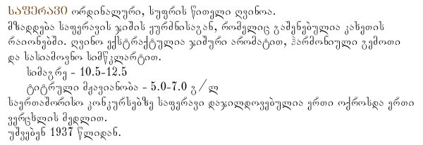 of the Sapheravi grape variety cultivated in Kakheti. An extractive wine
